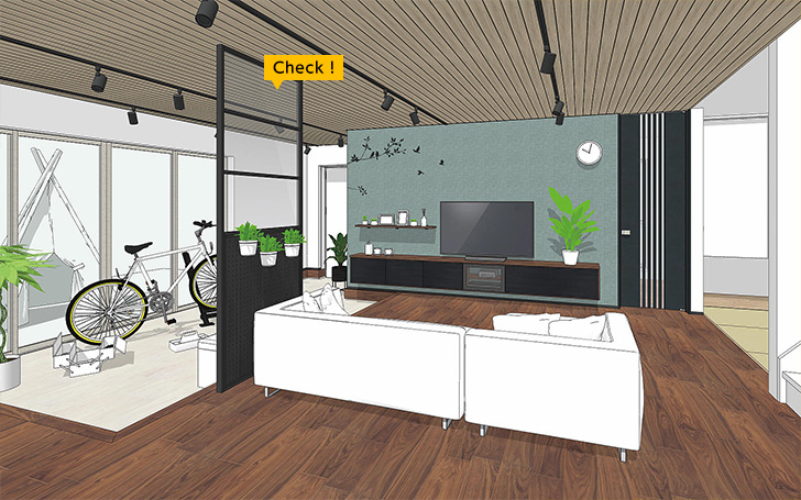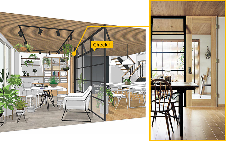 たとえば、リビングを明るく仕切ることでインナーテラスのような趣味を楽しむ空間を設けたり、陽の温もりと家族の存在を感じながら集中できるワークスペースを作ったり。今ある空間をオープンに仕切ることで陽だまりのある暮らしが手に入ります。