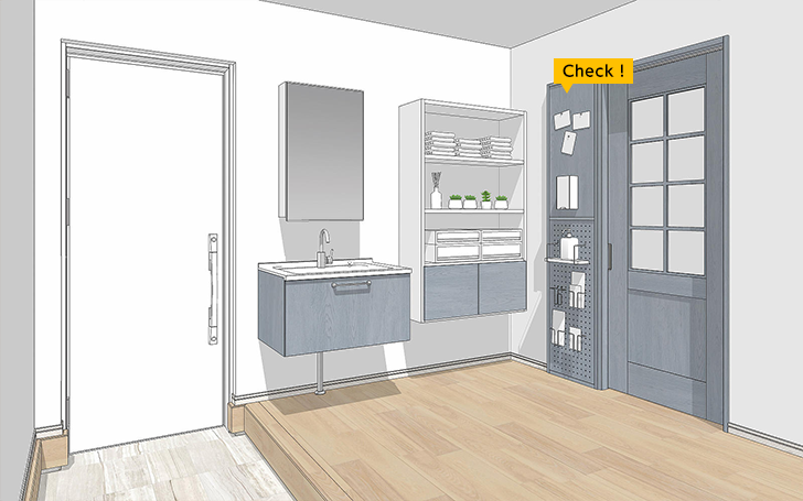 家や車の鍵などをはじめ、新幹線やイベントのチケットなど、お出かけ前に携えるものは玄関周りに置けるととても便利。壁面を利用して、有孔ボードにフックを取付けて鍵類や帽子などを、マグネットボードも活用して、チケット類やメモを貼っておけると忘れ物がなくなるだけでなく、機能的な空間ができ上ります。