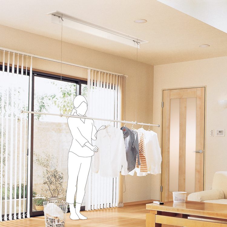 背の低い方にとって、高い位置にある物干し竿は使いにくいもの。 洗濯物を干す際は、使いやすい高さまで降ろせるといいですね。 室内物干しユニット#ホシ姫サマは、120cmの高さまで竿を降ろすことができるので、 ラクに洗濯物を掛け外しできます。