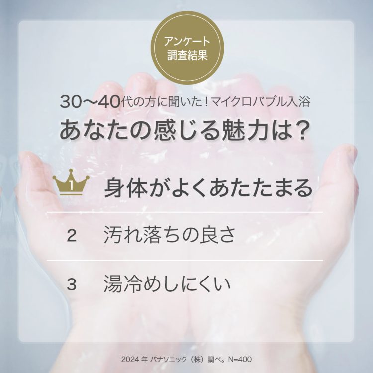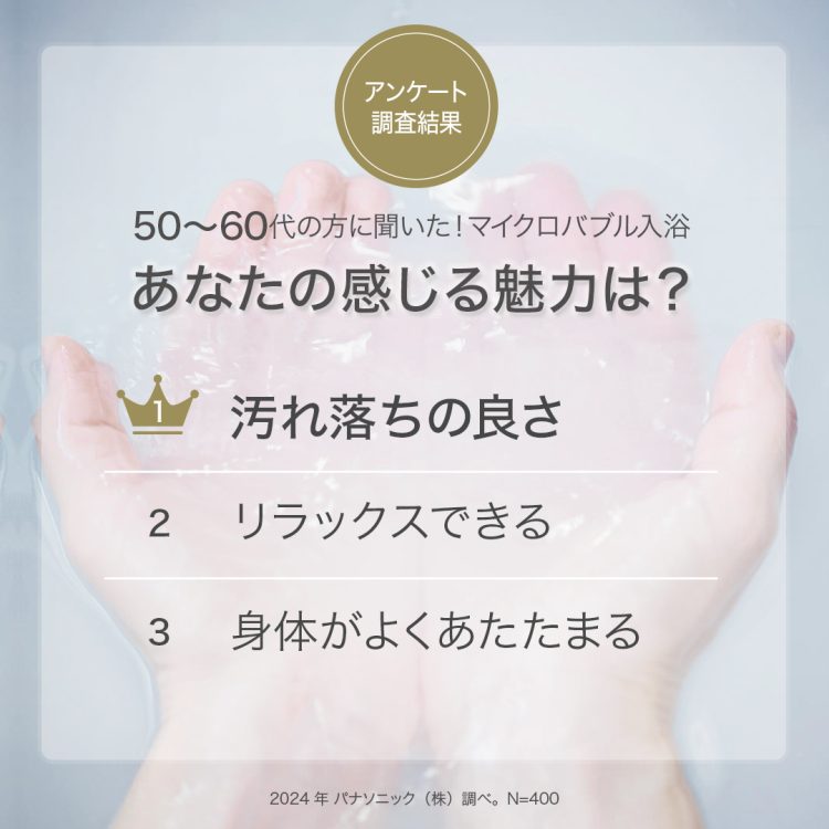 SNSなどでも話題の、ミクロサイズの泡を浴槽に噴き出す“マイクロバブルバス”。小さな泡が溶け込んだ心地よい手触りのお湯に包まれて過ごす時間は、まさに至福のひとときです。
