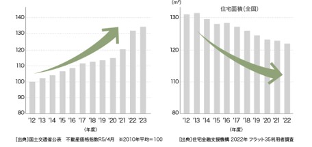 この10年で//不動産価格は1.3倍に//注文住宅の面積は平均で△3坪に//