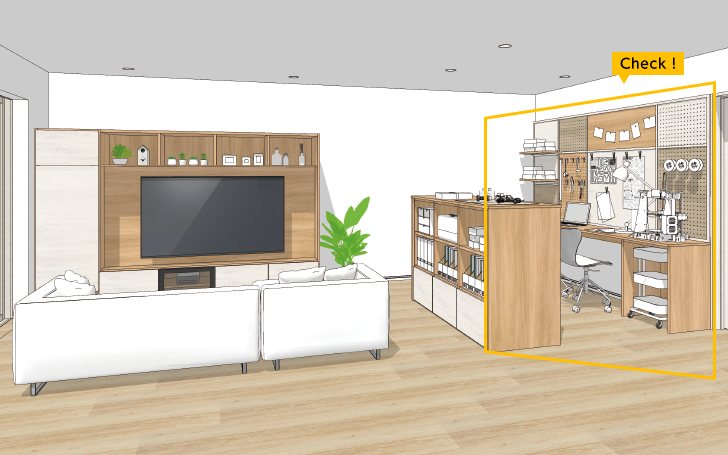 個室を用意するとこもりがちになる子供たち。勉強を気軽にサポートできる距離感が魅力の「リビング学習スペース」を用意するケースが増えています。その際は、空間の雰囲気を損なわないようにリビング収納とセットでコーディネイトを考えるのがおすすめ。お部屋の間取りに合わせて造作家具のようにピッタリとプランできることも、リビングを快適にするポイントです。
