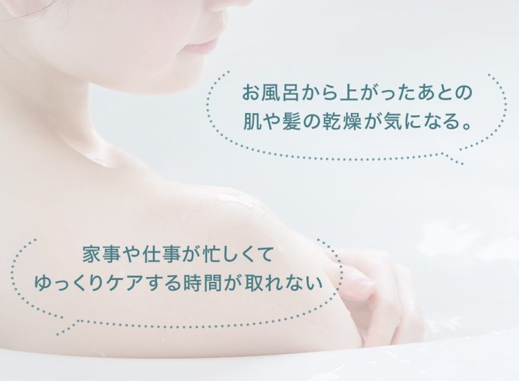 乾燥が気になるこの季節。お風呂あがりに、肌や髪がいつもより乾いていると感じることはありませんか?きちんとケアしないといけないとは思っていても、ゆったりとセルフケアの時間を取るのは難しいもの…。忙しい毎日の中で肌や髪のケアを手間なく習慣化するなら、毎日のバスタイムに注目するのがおすすめです。