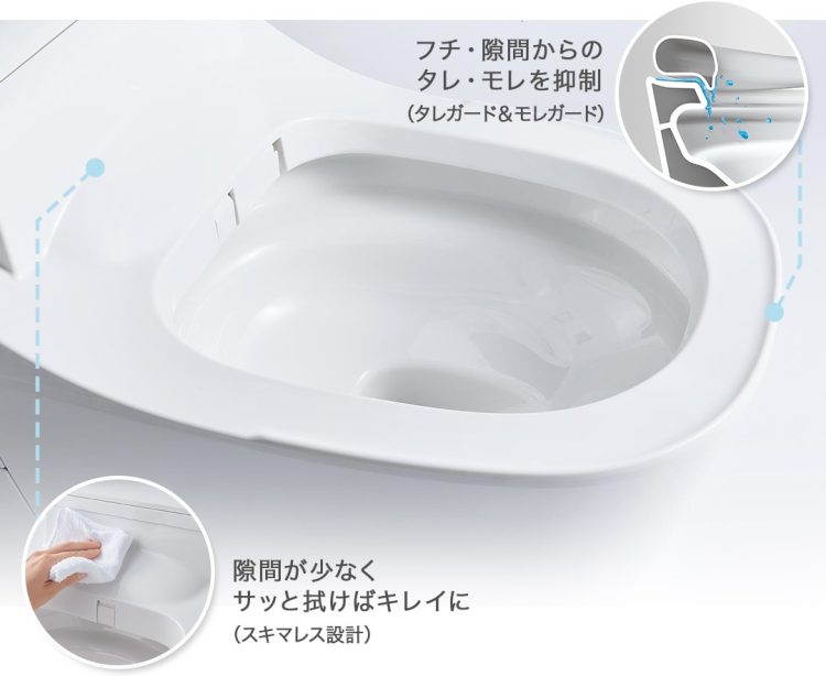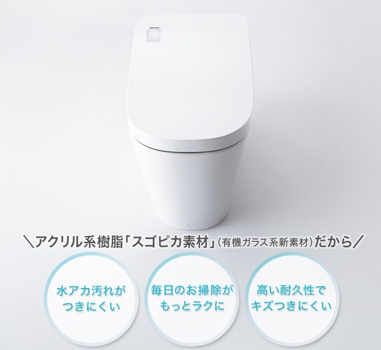 高い撥水性と耐久性をもつスゴピカ素材(有機ガラス系新素材)であることに加え、高い加工性を生かした独自構造「#スキマレス構造 」や「#タレガード 」「#モレガード 」などで、お掃除のしやすさも追求しています。